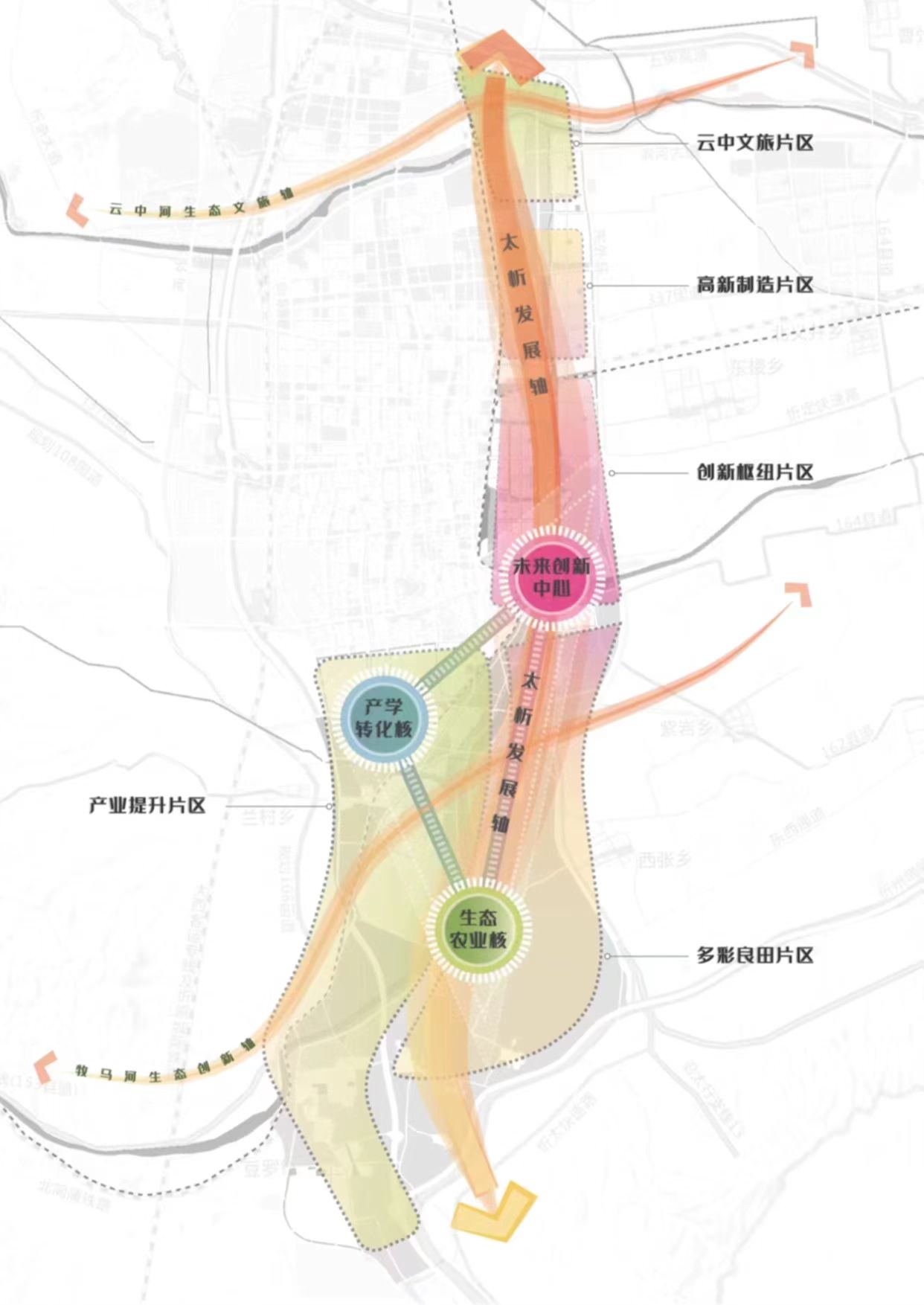 規(guī)劃面積約100平方公里,北至北外環(huán),南至石嶺關(太原界),西至北同蒲鐵路,東至東外環(huán)。新區(qū)作為太忻一體化經濟區(qū)忻州片區(qū)的啟動區(qū),堅持生態(tài)優(yōu)先、綠色發(fā)展,統籌生活、生態(tài)、生產三大空間,以“一心雙核、三軸五片區(qū)”規(guī)劃布局,預留未來產業(yè)發(fā)展用地,重點發(fā)展雜糧產業(yè)、現代物流產業(yè)、新能源材料產業(yè)、文旅產業(yè)和科技創(chuàng)新智造產業(yè),北部打造高新制造集合體、云中河東段打造休閑度假文旅區(qū)、中部打造創(chuàng)新樞紐核心區(qū)、西南部打造產業(yè)提升區(qū)、東南部打造多彩良田示范區(qū),形成與大盂產業(yè)新城南北呼應之勢。