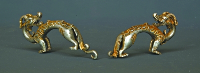 從造型看,這對(duì)銀龍“獸身飛羽、鱷吻回首”。其軀干是哺乳動(dòng)物的造型(蒙古學(xué)者認(rèn)為是獵狗),而不是后來大家常見的爬行動(dòng)物,同時(shí)背部頸部都有飛起的羽毛。嘴為鱷魚嘴,向前突出,牙齒明顯,頭是回首狀。很多的細(xì)節(jié),包括牙齒、眼睛、羽毛,都做得很細(xì)致。周立剛認(rèn)為,這個(gè)龍與漢代壁畫、畫像石、瓦當(dāng)上龍形非常相近。