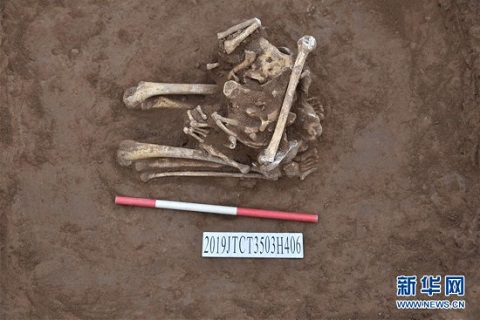 這是在河南濟(jì)源柴莊遺址發(fā)現(xiàn)的罕見人祭遺存(資料照片)。新華社發(fā)(河南省文物考古研究院供圖)