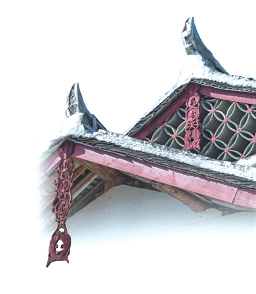 懸魚寓意豐富,蘊(yùn)含著古人對平安、幸福的向往。懸魚有祈求建筑免遭火災(zāi)的寓意,木結(jié)構(gòu)古建筑怕火,而魚為水中之物,懸魚有水能克火之意。不僅是懸魚,過去古建筑的屋頂上,常裝飾與水有關(guān)的意象,如龍、鴟吻、鰲魚、水草等。懸魚也有祈求吉祥、富貴有余等寓意。魚與“余”“裕”諧音,象征富余、富裕、吉慶有余。魚多子,也體現(xiàn)了人們祈求多子多孫的愿望。有的懸魚下端雕兩條尾部相交的游魚,寓意雙魚喜慶。懸魚除了使用魚的形象,也會(huì)采用其他紋樣,如蝙蝠紋樣,取“?!敝?;桃花、荷花、梅花、牡丹等紋樣,寓意吉祥、和美、富貴;花瓶紋樣,象征平安等。后來,懸魚不斷演化,有了卷云如意、飛禽等圖案,造型的式樣也日趨豐富。