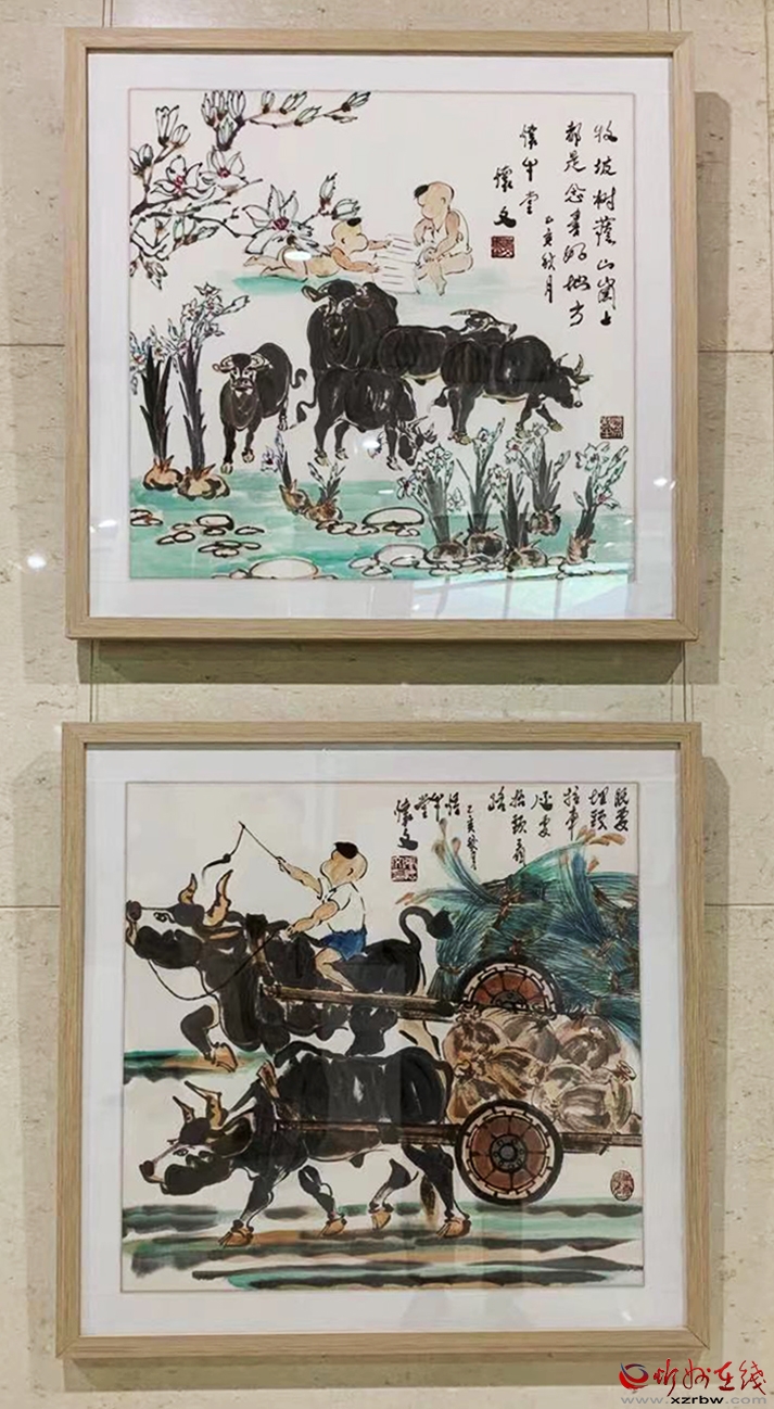 上千平方米的展廳內(nèi),299幅尺幅不同、姿態(tài)各異的以牛為表現(xiàn)主題的國(guó)畫(huà)作品,組成了一個(gè)牛的世界,多角度展現(xiàn)了牛的精神。