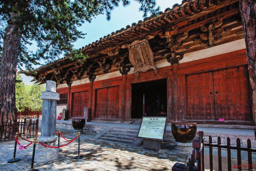 “除殿本身為唐代木構(gòu)外,殿內(nèi)尚有唐塑佛菩薩十余尊,梁下有唐人題名墨跡,栱眼壁有唐代壁畫(huà),此四者一已稱絕,而四藝集于一殿,誠(chéng)我國(guó)第一國(guó)寶也!”這是中國(guó)著名建筑學(xué)家梁思成對(duì)五臺(tái)山佛光寺的贊譽(yù)。