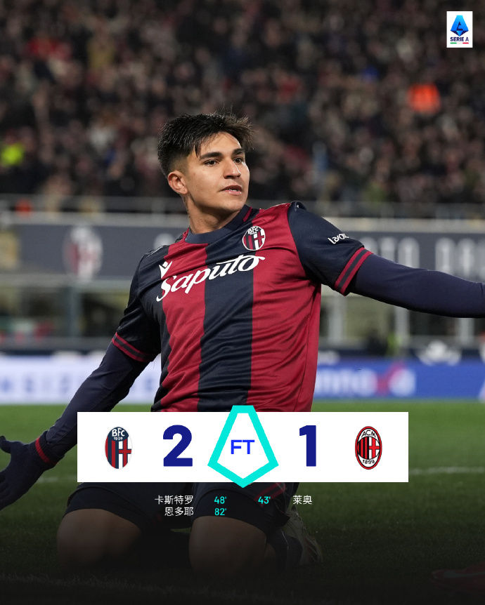 主場全取三分后,博洛尼亞升至第六位,進入積分榜的歐洲賽事資格區(qū)域。而傳統強隊AC米蘭則跌至第八位。國際米蘭、那不勒斯和亞特蘭大占據積分榜前三位。