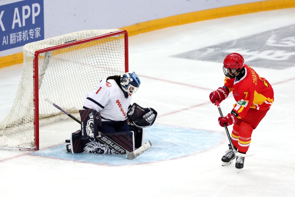 比賽伊始,雙方攻勢積極。第三分鐘,荷蘭隊(duì)打出精妙配合,科拉德門前補(bǔ)射得手,冰球從中國隊(duì)門將詹佳慧腿下滑入球網(wǎng),比分變?yōu)?:1。