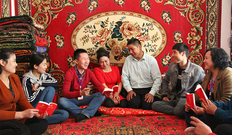 △達(dá)西村村民在聆聽駐村工作隊(duì)隊(duì)員宣講黨的好政策。 “口袋里要鼓囊囊,精神上要亮堂堂”。2014年4月,習(xí)近平在新疆考察時(shí)講到了達(dá)西村的村訓(xùn)。村民們懷著激動(dòng)的心情給總書記寫信,匯報(bào)這些年村里的積極變化。當(dāng)年9月,習(xí)近平總書記給沙吾爾·芒力克和全體村民回信,強(qiáng)調(diào)興疆穩(wěn)疆,重在基層。 如今,達(dá)西村是3A級(jí)景區(qū)。以達(dá)西展覽館為龍頭,風(fēng)情街、馕產(chǎn)業(yè)街、夜市、風(fēng)情園、香梨園……串聯(lián)起達(dá)西村鄉(xiāng)村旅游格局。