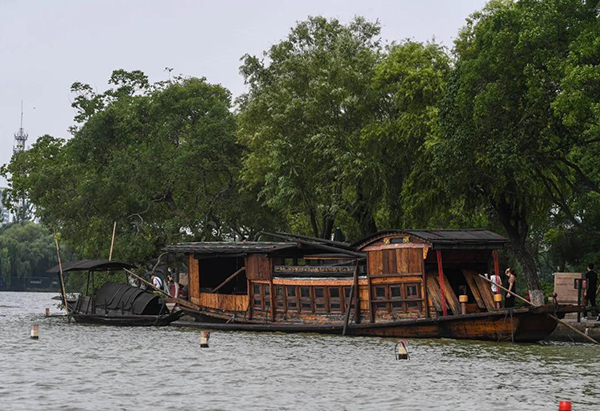 7月1日,嘉興南湖景區(qū)內(nèi)停泊的中共一大紀念船。新華社記者 徐昱 攝