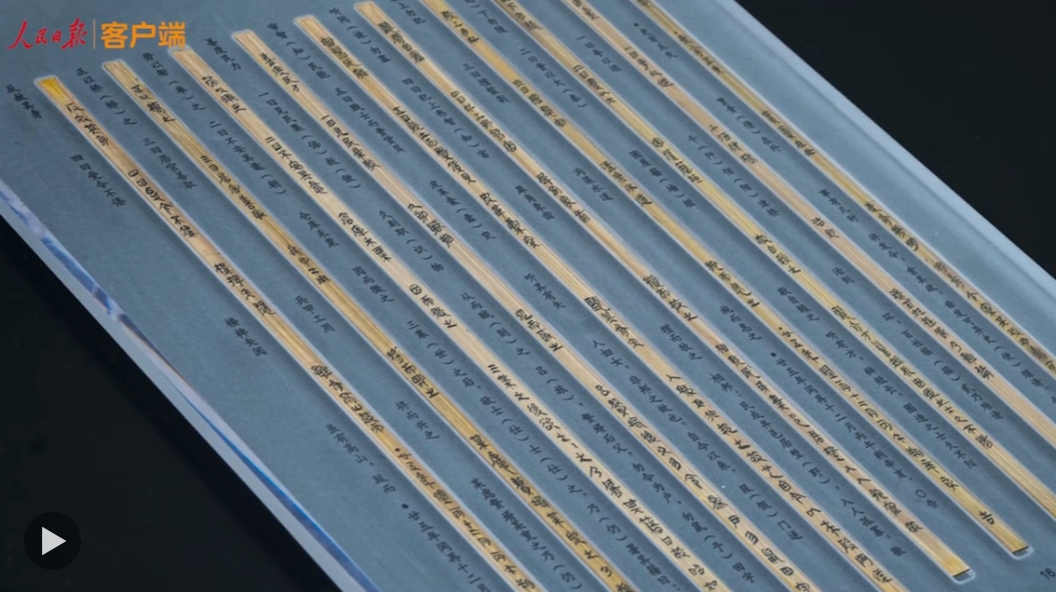 湖北荊州文物保護(hù)中心工作人員對修復(fù)完成的簡牘進(jìn)行記錄。