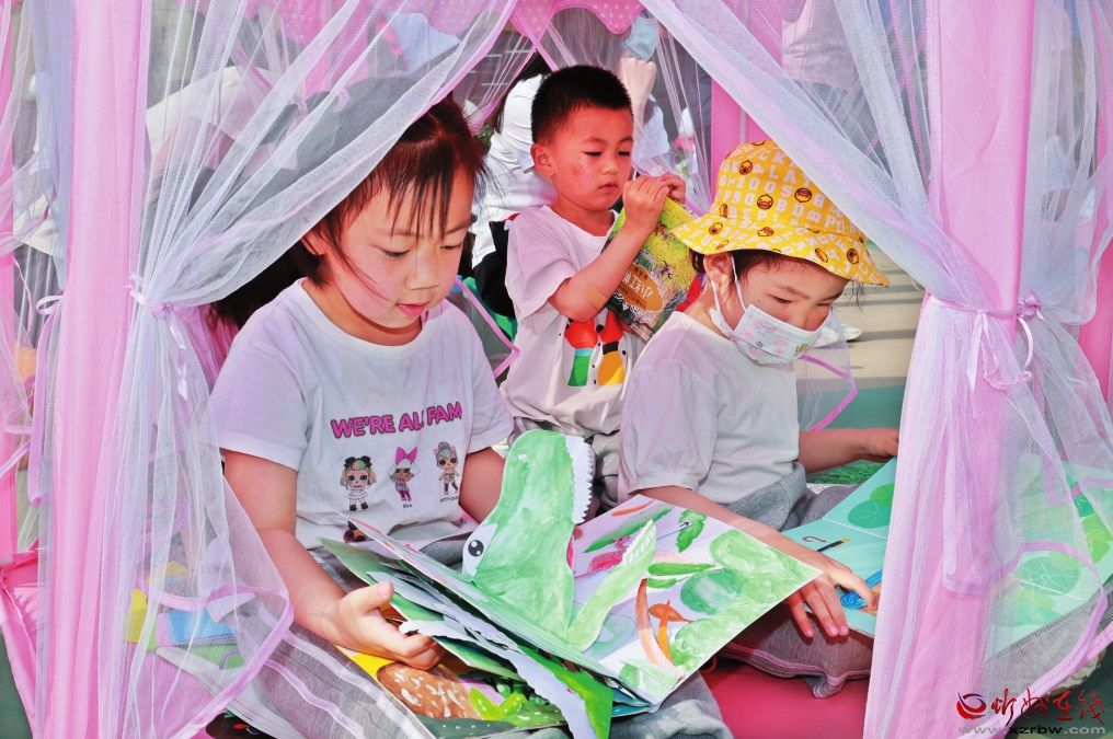 近日,市實驗幼兒園開展了主題為“書香潤澤 向美而生”親子自制圖書閱讀活動 。通過開展活動,培養(yǎng)孩子們對圖書的興趣,促進(jìn)其想象創(chuàng)造、語言表達(dá)和動手能力的發(fā)展,營造良好的家庭讀書氛圍。 (張存良攝)