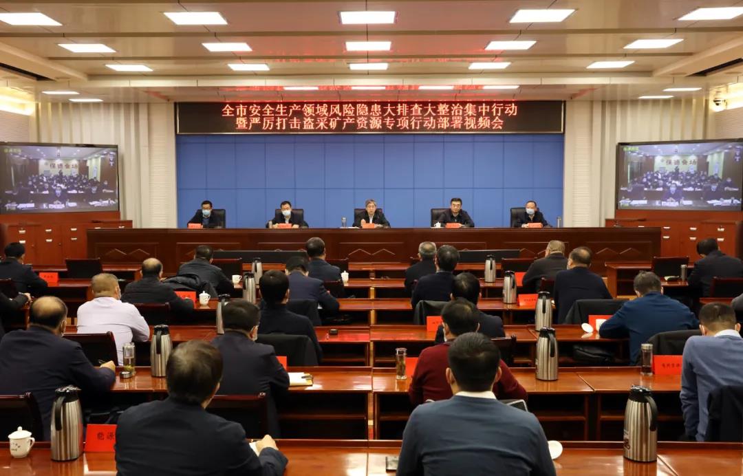 12月21日,全市安全生產(chǎn)領(lǐng)域風(fēng)險(xiǎn)隱患大排查大整治集中行動(dòng)暨嚴(yán)厲打擊盜采礦產(chǎn)資源專項(xiàng)行動(dòng)部署會(huì)召開(kāi),貫徹全省會(huì)議精神,安排我市當(dāng)前工作。市委書(shū)記朱曉東主持會(huì)議并作重要講話,強(qiáng)調(diào)歲末年關(guān)各項(xiàng)工作千頭萬(wàn)緒,安全生產(chǎn)的嚴(yán)峻性、艱巨性、緊迫性尤為突出,各級(jí)各部門(mén)務(wù)必高度重視,從嚴(yán)警醒起來(lái),堅(jiān)決杜絕麻痹僥幸心理、松懈情緒,以永遠(yuǎn)在路上的心態(tài),以一切從零開(kāi)始的作為,堅(jiān)持兩手用力,推進(jìn)兩個(gè)行動(dòng),全面落實(shí)好省委省政府和市委市政府部署要求,堅(jiān)決守牢安全生產(chǎn)底線。市委副書(shū)記、市政府黨組書(shū)記李建國(guó),市委常委、常務(wù)副市長(zhǎng)趙新年,副市長(zhǎng)、市公安局長(zhǎng)袁小波,市政府秘書(shū)長(zhǎng)張艮生出席會(huì)議。會(huì)議以視頻方式召開(kāi),各縣(市、區(qū))設(shè)分會(huì)場(chǎng),兼任縣(市、區(qū))職務(wù)的市領(lǐng)導(dǎo)在分會(huì)場(chǎng)出席會(huì)議。市政府安委會(huì)成員單位和相關(guān)重點(diǎn)企業(yè)負(fù)責(zé)人在市主會(huì)場(chǎng)參加會(huì)議。