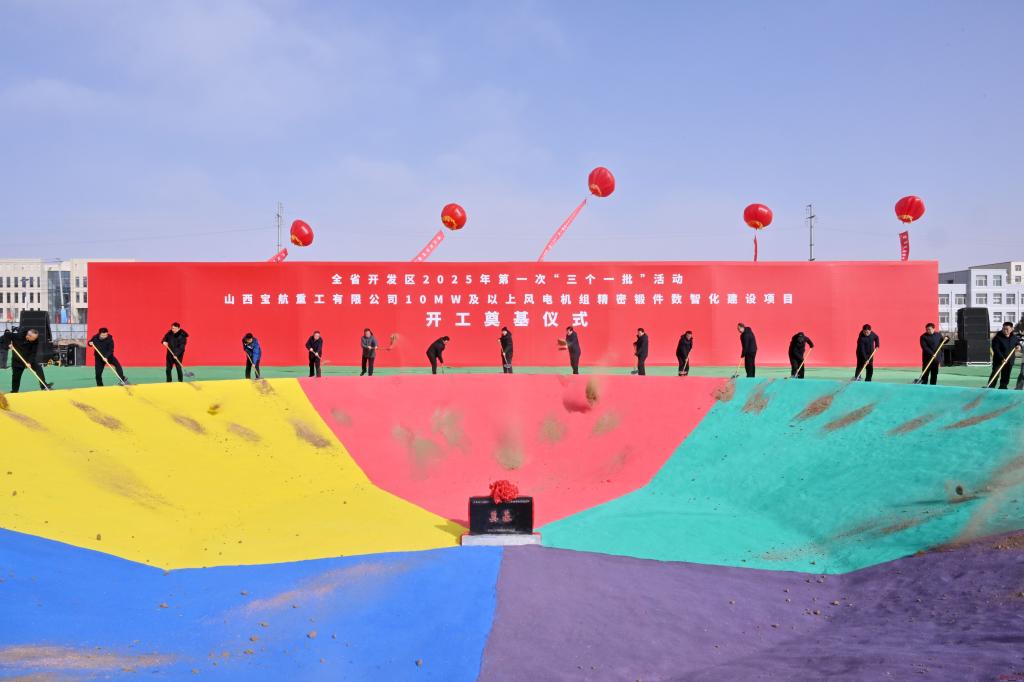 全省開(kāi)發(fā)區(qū)2025年第一次“三個(gè)一批”活動(dòng)山西寶航重工有限公司10MW及以上風(fēng)電機(jī)組精密鍛件數(shù)智化建設(shè)項(xiàng)目開(kāi)工奠基儀式現(xiàn)場(chǎng)。馮曉磊 攝