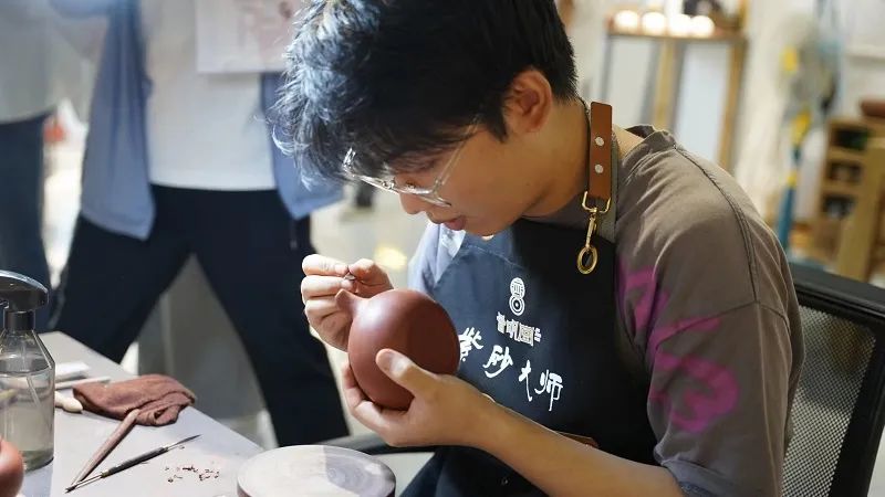 在砂器(紫砂)文化示范區(qū)的山西晉明堂文化科技有限公司(以下簡稱晉明堂),一位年輕人正熟練地運用各種工具給手里的紫砂壺進行壺嘴部分的制作。他叫穆清,今年剛20歲出頭的他,耳濡目染父親對紫砂文化的熱愛,也對這一行業(yè)產(chǎn)生了濃厚的興趣,決心將平定紫砂文化傳承發(fā)揚下去。