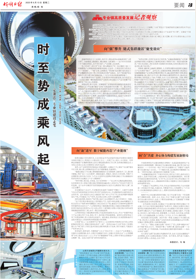 一系列成果已經(jīng)顯現(xiàn)?!抖ㄏ宸ㄌm專業(yè)鎮(zhèn)實(shí)施方案》《定襄法蘭專業(yè)鎮(zhèn)三年行動(dòng)計(jì)劃》《定襄縣鍛造產(chǎn)業(yè)數(shù)字化、智能化發(fā)展的實(shí)施方案》等系列規(guī)劃和政策性文件先后出臺(tái);專業(yè)鎮(zhèn)重大項(xiàng)目清單、招商引資清單完整出爐;產(chǎn)業(yè)擴(kuò)規(guī)提質(zhì)、數(shù)字化賦能、創(chuàng)新能力提升、平臺(tái)建設(shè)、資本助力、穩(wěn)外貿(mào)拓市場、要素集聚、人才培育、優(yōu)化環(huán)境、宣傳推介等十大行動(dòng)握指成拳、合力攻堅(jiān);三大平臺(tái)、五個(gè)中心雛形初現(xiàn)。