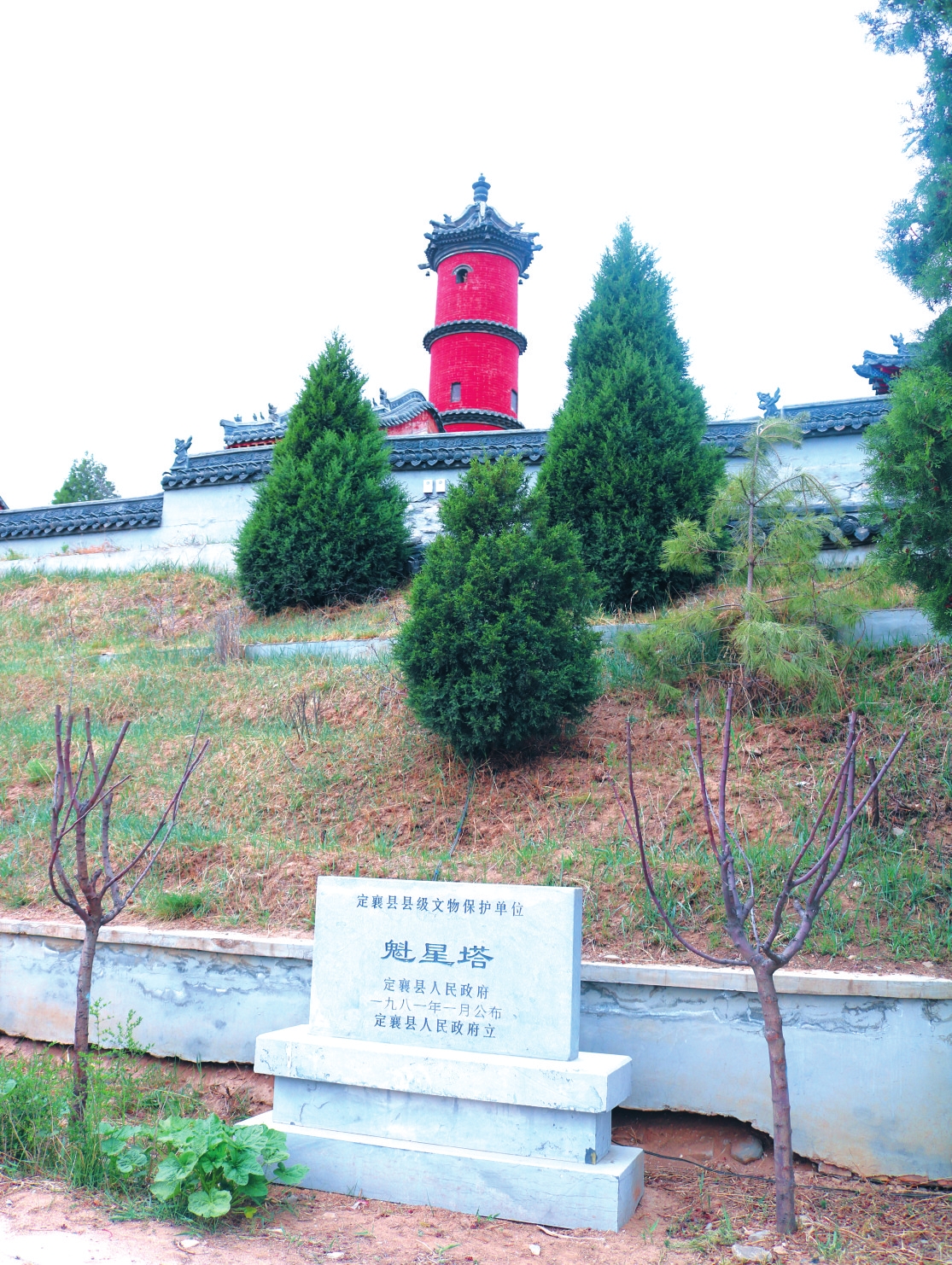 魁星塔位于定襄縣神山鄉(xiāng)神山村東約150米處,為圓形三層實(shí)心磚塔。塔基平面呈圓形,石砌而成,高0.52米,直徑2.7米,占地面積5.7平方米。據(jù)塔碣記載,該塔建于清乾隆二十三年(1758),光緒二十一年(1895)維修。塔身為三層圓形結(jié)構(gòu),通高約11米,通體素面,每層設(shè)磚砌花牙塔檐,上露筒瓦,三層南側(cè)辟壺門。一層南側(cè)、東側(cè)各嵌塔碣1方。六角攢尖頂,上置剎座露盤、寶珠塔剎。受自然酸雨侵蝕和年久失修等因素影響,塔頂部有所受損。1981年,被公布為縣級(jí)文物保護(hù)單位。2012年社會(huì)集資維修了魁星塔,現(xiàn)保存完好。2022年5月,被公布為市級(jí)文物保護(hù)單位。