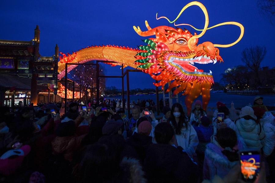 中國各地以龍為主題的展覽、游園會以及文創(chuàng)產(chǎn)品等紛紛“上新”,為中國文旅市場復(fù)蘇增添強(qiáng)勁動力。以北京為例,2月10日至2月13日,全市重點監(jiān)測的旅游景區(qū)(地區(qū))為174家,累計接待游客960.1萬人次,同比增長80.4%。