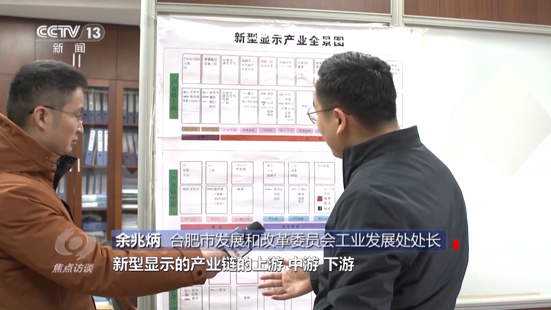 合肥市發(fā)展和改革委員會工業(yè)發(fā)展處處長 余兆炳:新型顯示產業(yè)全景圖上面顯示了合肥市發(fā)展新型顯示的產業(yè)鏈的上游、中游、下游本地的優(yōu)勢企業(yè)和龍頭企業(yè)。有這個全景圖其實是我們對標作戰(zhàn)、掛圖作戰(zhàn)、非??梢暬淖鲬?zhàn)。