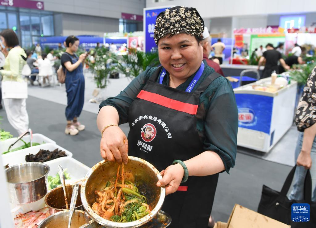 5月23日,來(lái)自甘肅天水的參展商在第二十屆文博會(huì)現(xiàn)場(chǎng)展示天水麻辣燙。(新華社記者 毛思倩 攝)