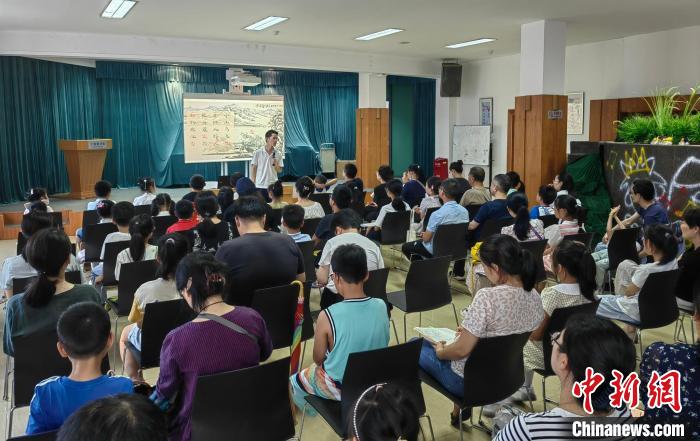 寧波圖書館“共讀Moment·閱經(jīng)典”活動現(xiàn)場幾乎座無虛席,當(dāng)?shù)刂Z文教師北辰為孩子們講解柳宗元的《江雪》。 中新網(wǎng)記者 應(yīng)妮 攝