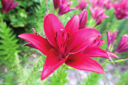 百合花種類繁多,形態(tài)各異。純凈高雅的白色、熱情嫵媚的紅色、明麗澄澈的橙黃、浪漫俏皮的粉紅、雍容華貴的紫色,形似漏斗,又如喇叭,或向上開花,張揚(yáng)外翻、極端華麗,或含露低垂,矜持含蓄、超凡脫俗。花間蜂蝶飛舞,暗香浮動(dòng),游人三五成群,在花叢合影拍照,游玩嬉戲,好不愜意。市民王女士對(duì)這里贊賞有加:“看到這五顏六色的百合花,我的心情像盛開的花一樣,特別美!這里每季有每季的花開,每次來都有不一樣的驚喜和精彩。”