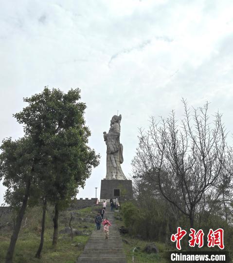 沿著山路盤旋而上,李白當(dāng)年于白兆山所寫下的詩句,恰如眼前看到的風(fēng)景。遠(yuǎn)遠(yuǎn)地,一座高大的雕像映入眼簾。為紀(jì)念李白,白兆山上修建了一座花崗巖李白石像:只見他左手緊握劍柄,目視遠(yuǎn)方,似有“我本楚狂人,鳳歌笑孔丘”之豪氣。