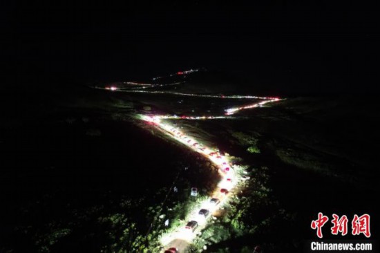 凌晨1點的夜空中掛滿星星,罕山上也“掛”滿了人。排隊上山的越野車綿延數(shù)公里,陡峭的盤山公路在車燈照射下宛若游龍。騎摩托的、步行上山的人也不少,偶爾還能看到騎馬的。