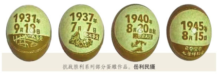 該系列作品遴選了“九一八事變”“七七盧溝橋事變”“百團(tuán)大戰(zhàn)”等12例抗戰(zhàn)歷史事件作為蛋雕素材,經(jīng)過(guò)20余天的構(gòu)思與精雕細(xì)刻,岳利民讓他的“家國(guó)情懷”成為了國(guó)家記憶的一部分。