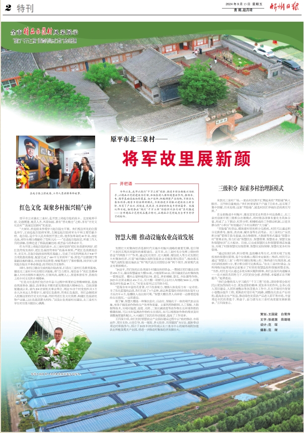 今年以來,我市以踐行“千萬工程”經(jīng)驗(yàn)、推進(jìn)鄉(xiāng)村全面振興為抓手,以精品示范村建設(shè)為引領(lǐng),加快農(nóng)村人居環(huán)境整治步伐,推動水、電、路等基礎(chǔ)設(shè)施向村覆蓋、向戶延伸;積極調(diào)整產(chǎn)業(yè)結(jié)構(gòu),不斷壯大集體經(jīng)濟(jì);探索鄉(xiāng)村治理新模式,不斷推進(jìn)鄉(xiāng)村振興建設(shè)邁上新臺階,書寫了產(chǎn)業(yè)興、環(huán)境美、民風(fēng)淳、生活好的和美鄉(xiāng)村新篇章。本報(bào)從即日起,陸續(xù)推出“踐行‘千萬工程’經(jīng)驗(yàn)忻州在行動”系列報(bào)道——全市精品示范村風(fēng)采展示特刊,讓精品示范村成為全市鄉(xiāng)村學(xué)習(xí)的標(biāo)桿。