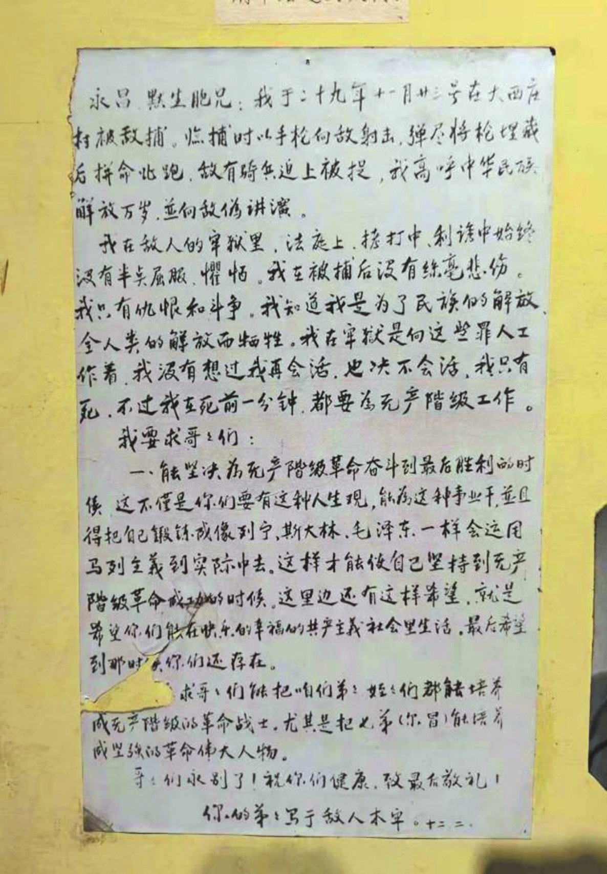 遺書中,表達(dá)了對(duì)抗戰(zhàn)勝利的必勝信心;直言“我死了是為國(guó)家為民族而犧牲”,以生命詮釋對(duì)黨的忠誠(chéng),展現(xiàn)了共產(chǎn)黨人堅(jiān)貞不屈的崇高革命精神與為共產(chǎn)主義奮斗終身的犧牲精神。