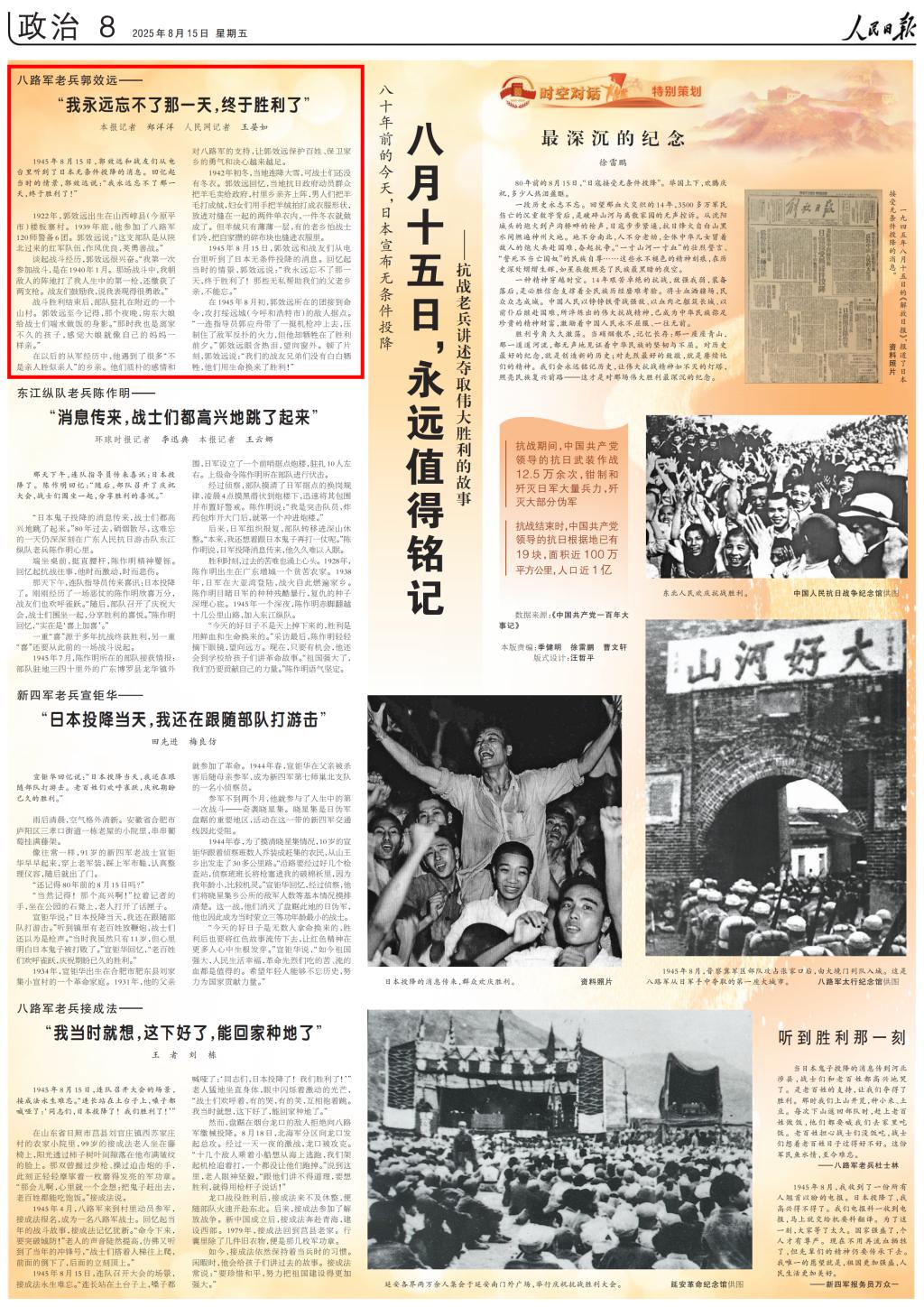 1945年8月15日,郭效遠和戰(zhàn)友們從電臺里聽到了日本無條件投降的消息?;貞浧甬敃r的情景,郭效遠說:“我永遠忘不了那一天,終于勝利了!”